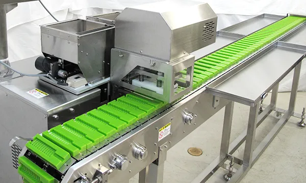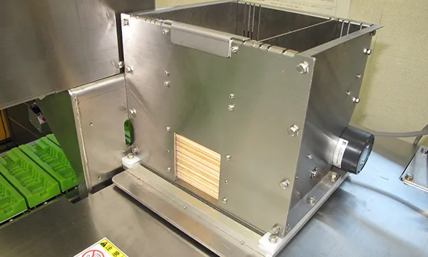 コンベアの幅を広げたモデルで200㎜や300㎜などの長尺串に対応したオプションです。